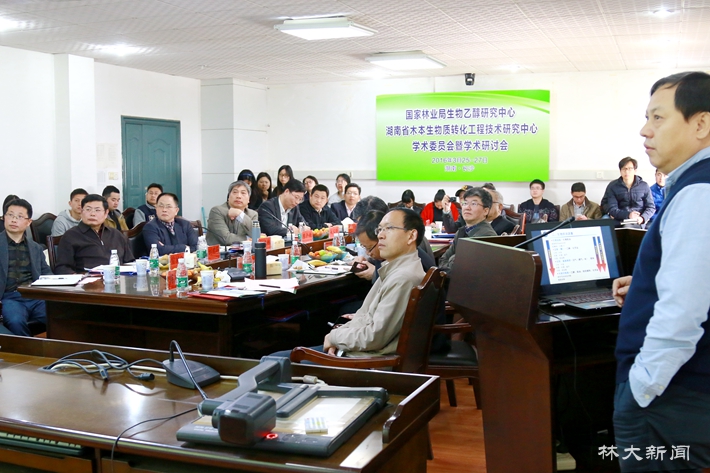 March 26, the bio ethanol research center of the State Forestry Bureau and Hunan Province woody biomass conversion engineering technology research center of the academic committee and seminar was held in the meeting room on the 6th floor of my school life science building.Academician Zhang Qisheng,Nanjing Forestry University academician; Researcher Chu Fuxiang, vice president of the Chinese Academy of forestry researcher;Researcher Ma Longlong, director of Guangzhou Institute of Energy Conversion, Chinese Academy of Sciences ;Researcher Jiang Jianchun, director of Institute of Chemical Industry of Forest Products CAF;Professor Chen Guanyi, dean of School of environmental science and engineering, Tianjin University.Professor Xiong Xingyao ,director of Hunan provincial Key Laboratory for germplasm innovation and utilization of crop in Hunan Agricultural University ;researcher Li Changzhu, dean of Hunan Academy of Forestry;Professor Jiang Jianxin director of Department of forest products and chemical engineering of Beijing Forestry University;Professor Zhao Yunlin, our university vice president,as well as the relevant departments and college responsible persons attended the conference.More than 50 teacher and student representatives from our school and other Hunan provincial universities were present.