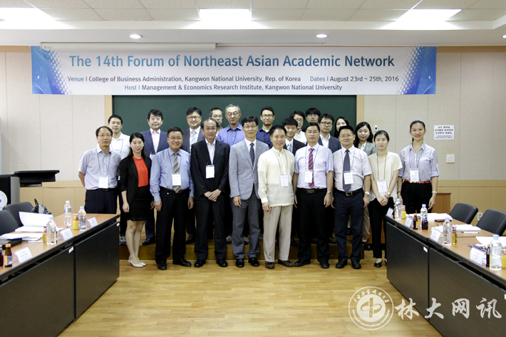 At the invitation of the School of Business Administration of Gangwon University in Korea, Prof. Zhu Yulin, Associate Professor Tan Dan, Associate Professor Li Xiaomin, and Prof. Yin Shaohua and Prof. Chen Wenjun from School of Economics of Central South University of Forestry and Technology , between August 23 and August 27, 2016,went to Southern Korea and participated in the 14th International Academic Conference on Northeast Asia in 2016. The Northeast Asia Academic Conference is an international academic exchange platform jointly organized by Toyama University of Japan, Central South University of Forestry and Technology, Toyama University of Japan and Gangwon University of Korea, which is held once a year. The theme of 14th Northeast Asia International Academic Conference is: "extension exchange, seek cooperation"